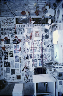 Epoxy. Works on Wall (Partial). The United States, 1983. Paper cutouts, plastic bags, and other found objects @ 2016 Asia Art Archive (蛙王的壁上創作以剪紙、膠袋及現成物作素材) |